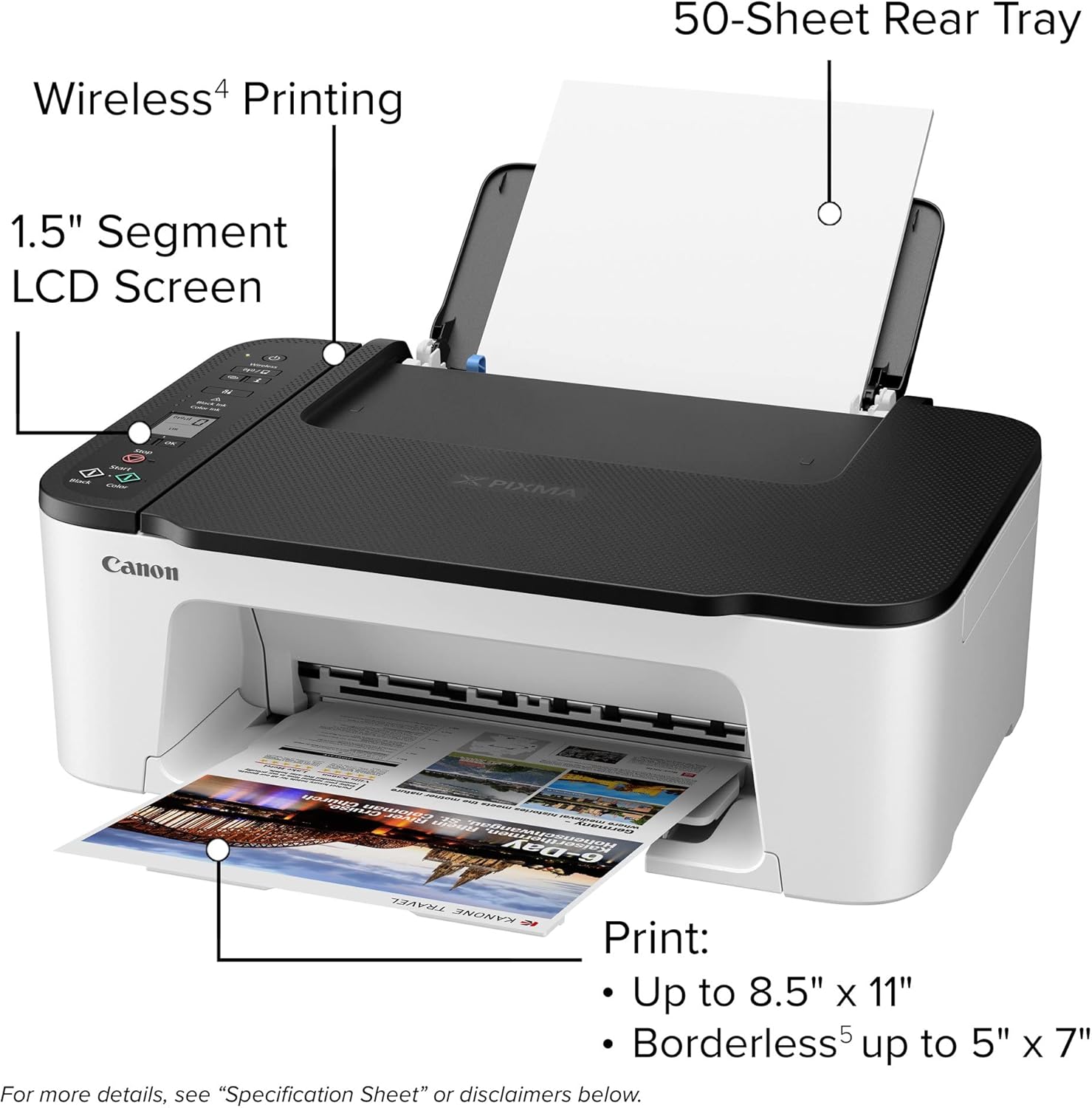 Welcome to simple and intuitive printing with the PIXMA TS Series Wireless All-in-One Printer. Easy to setup and easy to use with a simple to replace 2-Cartridge FINE Hybrid Ink System, improved Wi-Fi setup through Wireless Connect, a Rear Paper Tray for quick reloading of plain or photo paper, plus a flatbed scanner — the PIXMA TS Series is more than your basic printer. You can also easily print from your mobile devices using the Canon PRINT app, AirPrint, Mopria Print Service6, or from computers with built-in Wi-Fi.